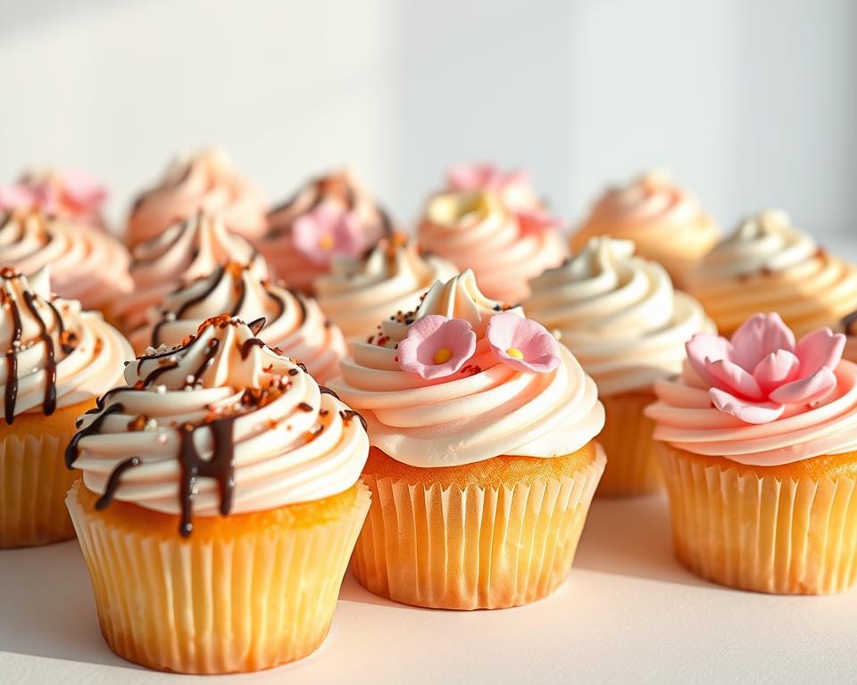 Add minis echoing your showpiece for a cohesive table. My Bake Studio produces tailored cupcakes and petite sweets to match your event palette and theme.